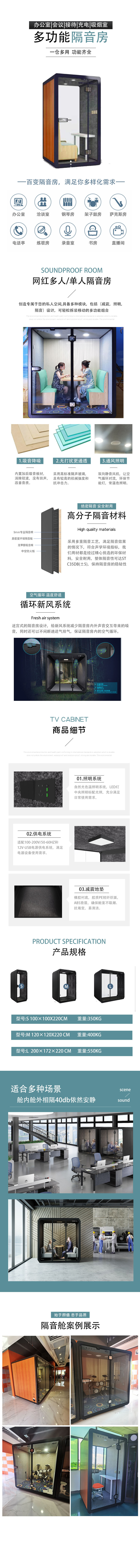 直播間隔音房是一款有著隔音降噪功能的移動玻璃間,在隔音房內(nèi)進(jìn)行吸音處理以及針對外部的隔音處理,阻隔內(nèi)部聲音可達(dá)30-40分貝,阻隔外音可達(dá)15-20分貝,目的主要是為了不讓隔音房外的人聽到里面的聲音,大幅度降低隔音房外部噪音對房內(nèi)的影響 隔音間類似一個大的隔音罩,立體面采用鋼化玻璃,吸音板 吸音棉和隔音板等材料,此隔音的方式使室內(nèi)達(dá)到低噪音環(huán)境。