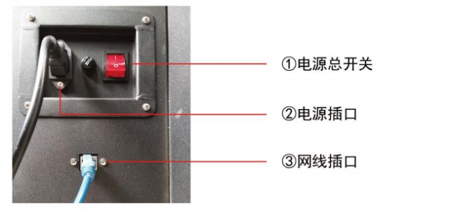 注:電源總開關(guān)按下直線為接通, 圓圈為斷開, 網(wǎng)絡(luò)線插口為標(biāo)準(zhǔn)RJ45接口, 每啟動(dòng)系統(tǒng)30次, 開機(jī)會(huì)進(jìn)行一次硬碟檢查, 可能需要10分鐘左右。