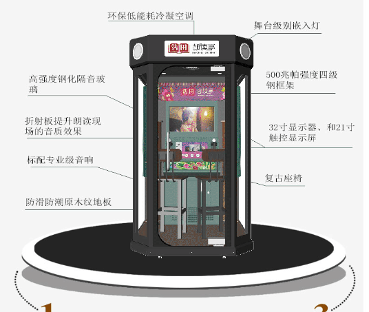 7.唱歌朗讀亭:全國首創(chuàng)豪華版唱歌+朗讀二合一的朗讀亭??勺杂汕袚Q朗讀模式和唱歌模式,朗讀可設置成免費,唱歌可設置為多少元一首或者多少元多少分鐘。