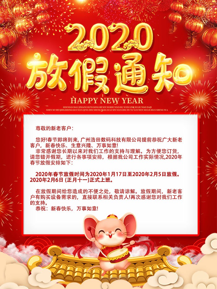 廣州浩田2020新年放假通知