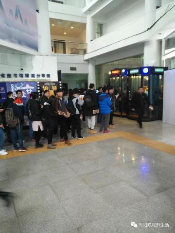 12月12日,盡管天氣寒冷,貴州省圖書館門口,人們排著長隊(duì),等候體驗(yàn)設(shè)在貴州省圖書館大廳里的朗讀亭。