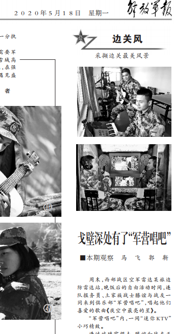 軍營(yíng)里有一些音樂(lè)迷。在擁有手機(jī)網(wǎng)絡(luò)信號(hào)的營(yíng)中,在業(yè)余時(shí)間,我們可以選擇手機(jī)沖浪作為一種休閑方式,但是手機(jī)不能解決官兵的所有精神需求。一些軍官也渴望向軍營(yíng)增加一些文化和娛樂(lè)硬件設(shè)施。