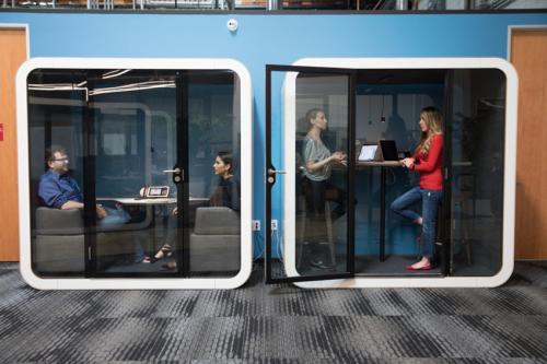 隱私倉采用90%的冷軋鋼制造,整體外觀造型顯得很年輕、時(shí)尚,顏色也是可以隨意搭配不同主題的裝修風(fēng)格,建成后可隨時(shí)移動(dòng)至辦公空間的任何角落;而在隱私性保護(hù)方面,隱私倉可對辦公場所中的各種聲音(包括電話、談話及咳嗽等)作出一定程度的隔離,而隱私倉內(nèi)的聲音較難傳出艙外,以保證員工私密性需求。