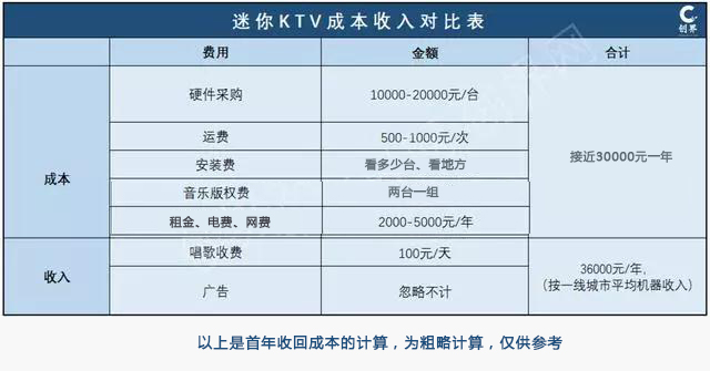 迷你KTV成本和收入對比表