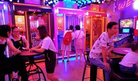 全民K歌在杭州開了第四家店自助K歌店。它由7間迷你KTV房、休閑娛樂區(qū)和休息區(qū)組成,占地約500平方米。其中,休閑娛樂區(qū)設有彈珠機、自助販售機、自助橙汁機等,頗為契合“自助”、“無人值守”的概念。看上去,這和傳統(tǒng)KTV、迷你KTV都不太一樣。