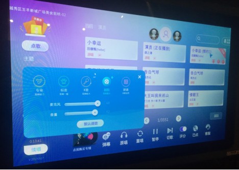 一般例如友唱、哇屋的效果音與傳統(tǒng)KTV麥克風音效選擇并無二致,基本是回聲的效果,不是專業(yè)的混響效果音,并且回聲效果音時間很長。呈現(xiàn)方式沿用了傳統(tǒng)的觸屏式調(diào)音,專業(yè)、標準、K歌、劇院,這四種分別代表混響較小、混響一般、混響較大、混響最大。劇院混響效果最明顯,但因為延時時間長,有些影響聲音的清晰度,聽到的聲音會比較悶,而且唱歌時如果聲音比較大,地板會有振動的感覺。