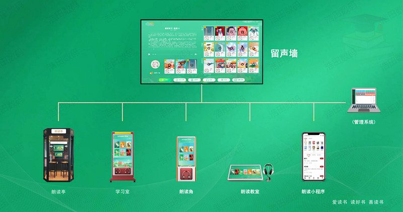 以“朗讀亭” “桌面聽書機(jī)”“朗讀終端” “留聲墻” “留聲卡”為載體,建設(shè) 書香校園,有聲校園等主題文化。