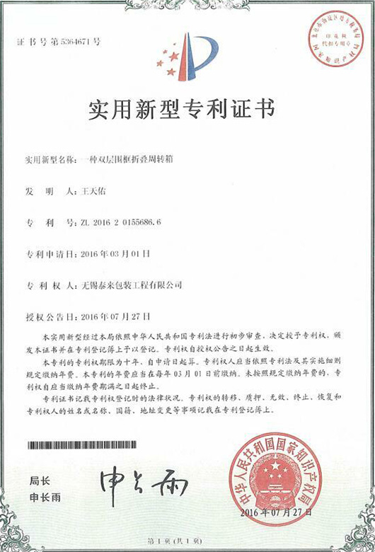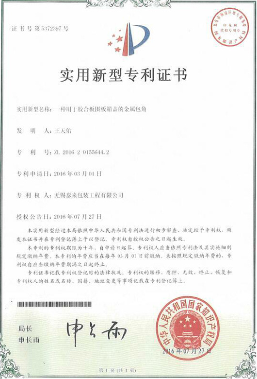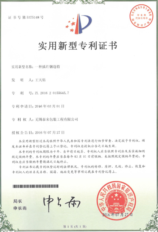 設(shè)有鋼邊框的紙木混合箱專利認(rèn)證
